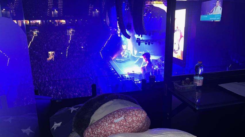 Auch die Mitarbeitenden der Barclays Arena spielten bei der Umsetzung des Herzenswunsches von Frau S. eine große Rolle. Dank der großartigen Unterstützung durften wir sogar exklusiv eine der begehrten Logen nutzen. Unser Fahrgast konnte das Konzert nur noch liegend genießen und hatte so freie Sicht auf die Bühne.